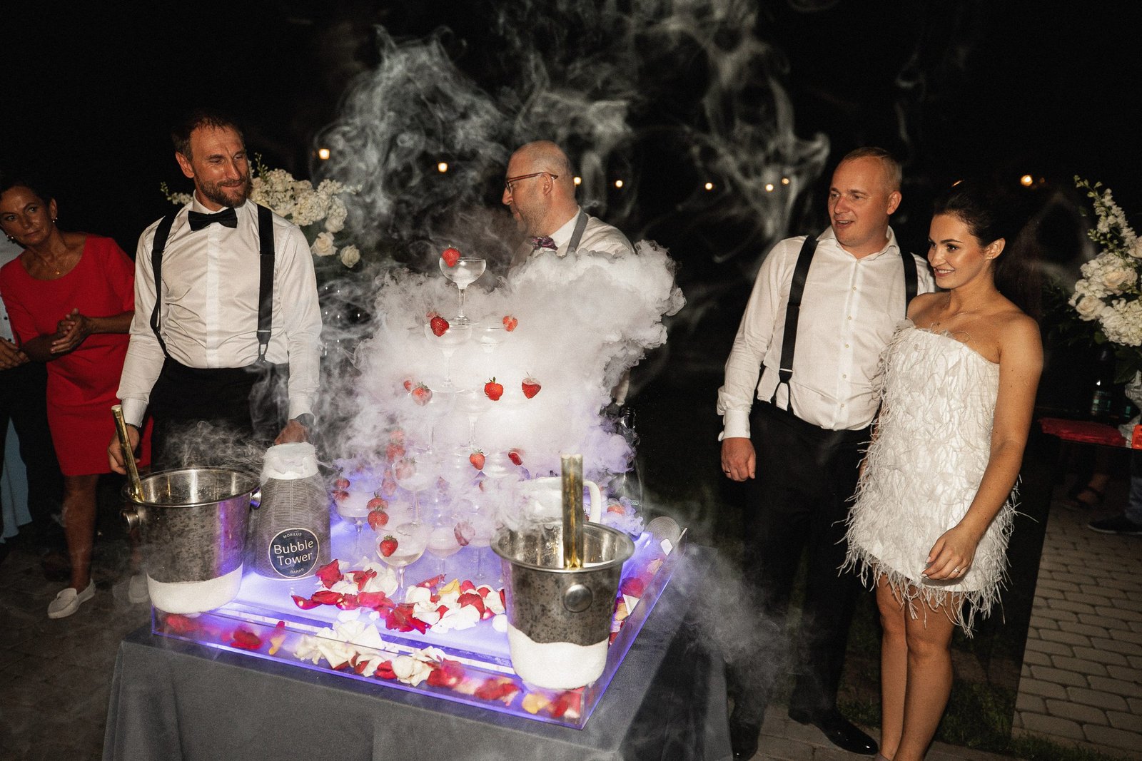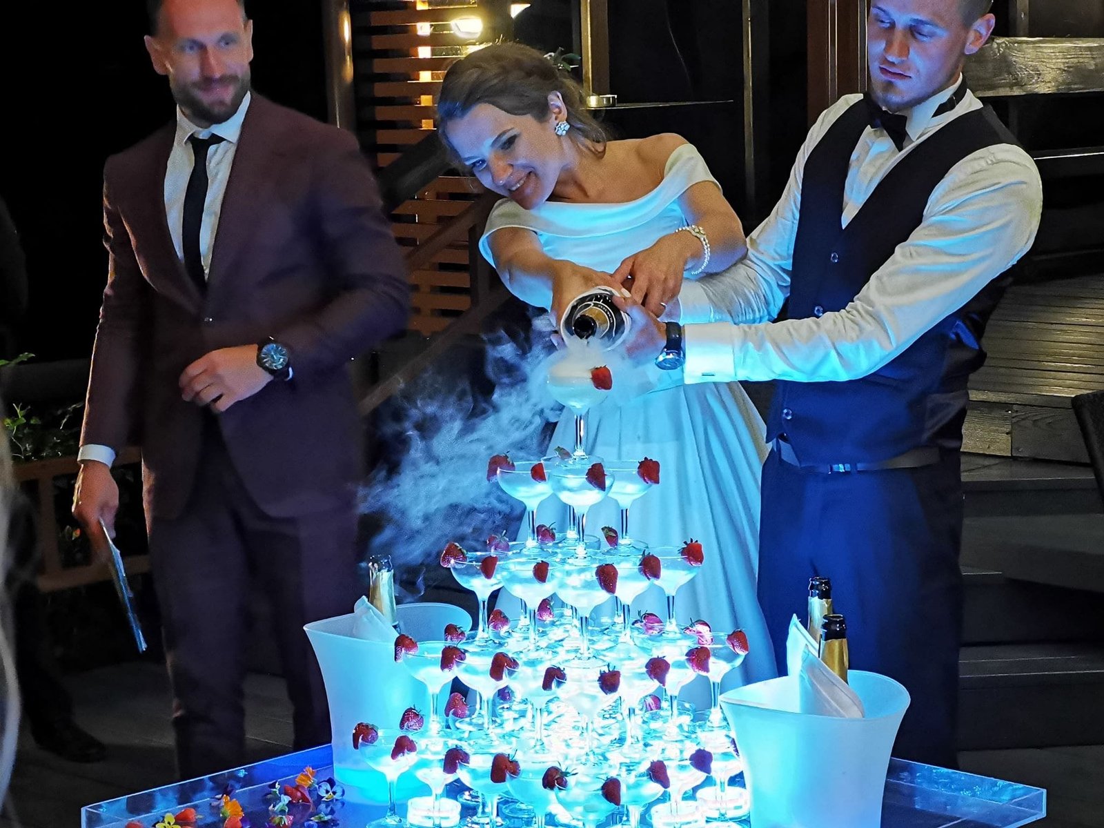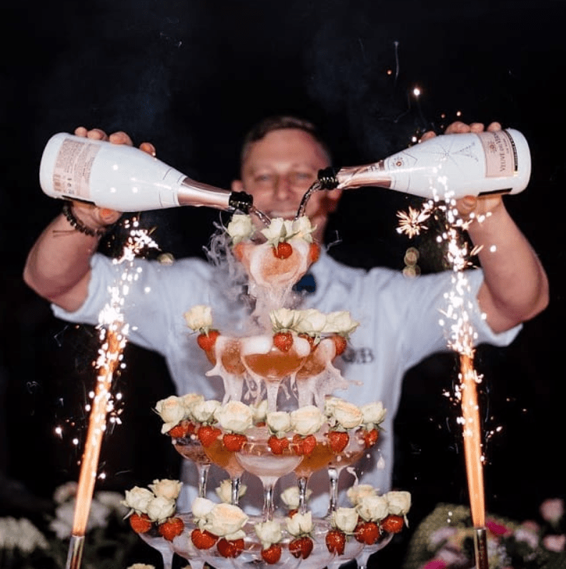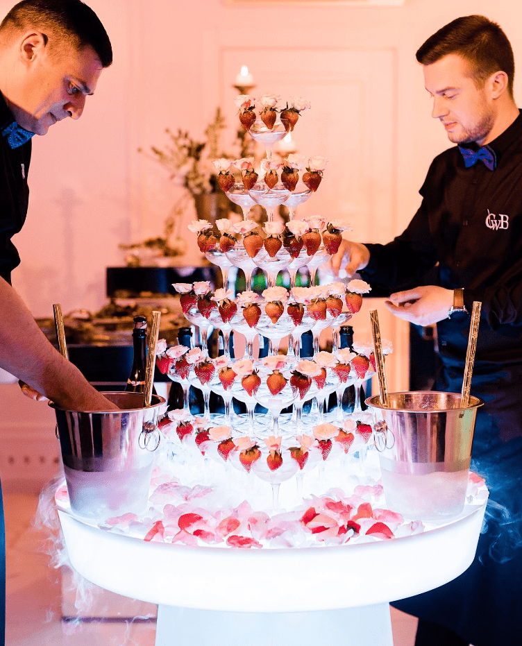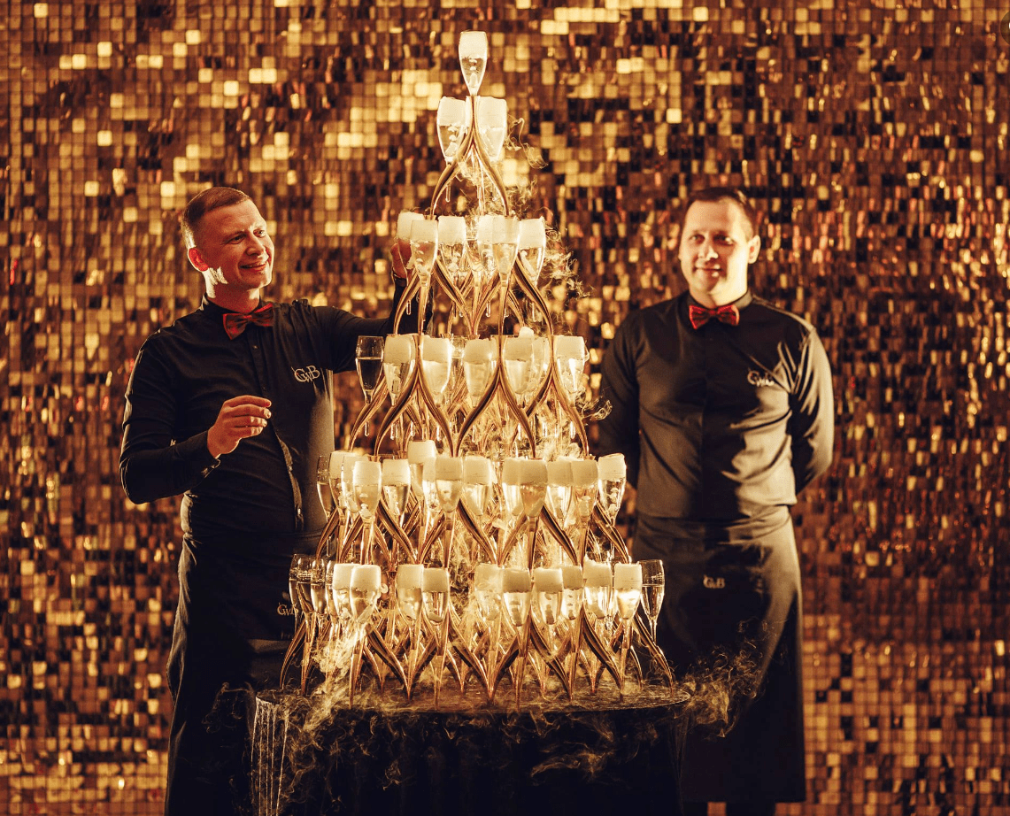 Šią pramogą ypač populiaru rinktis kaip vidurnakčio šou. Ir ne veltui! Profesionalūs barmenai šią akimirką padarys iškilmingą, o svečiai vaišinsis puikiu šampanu.