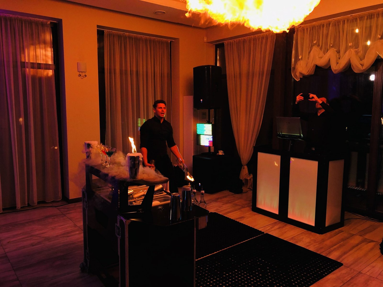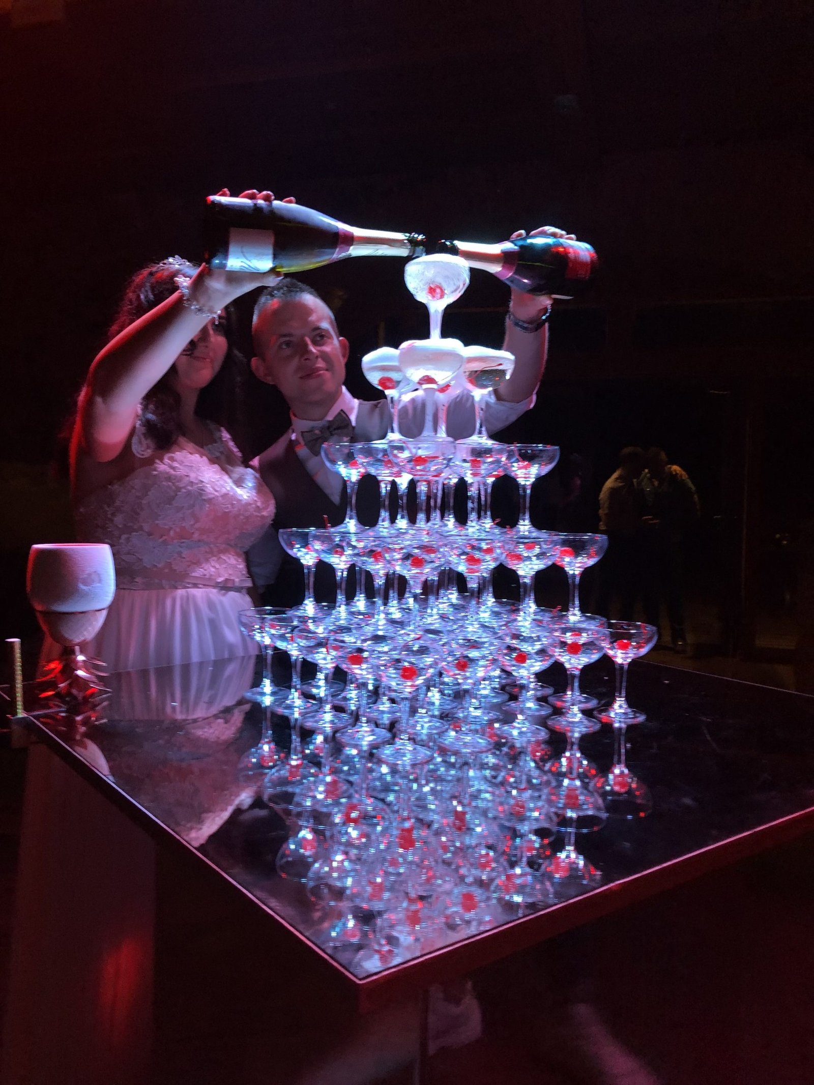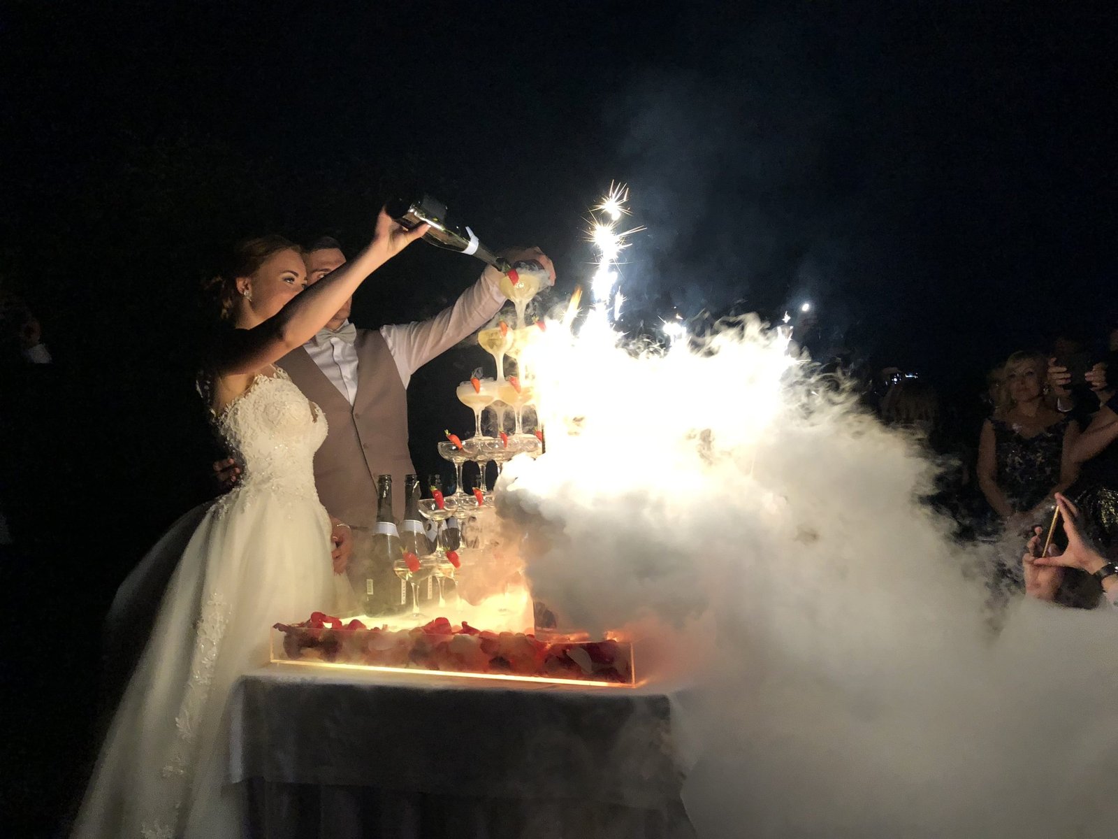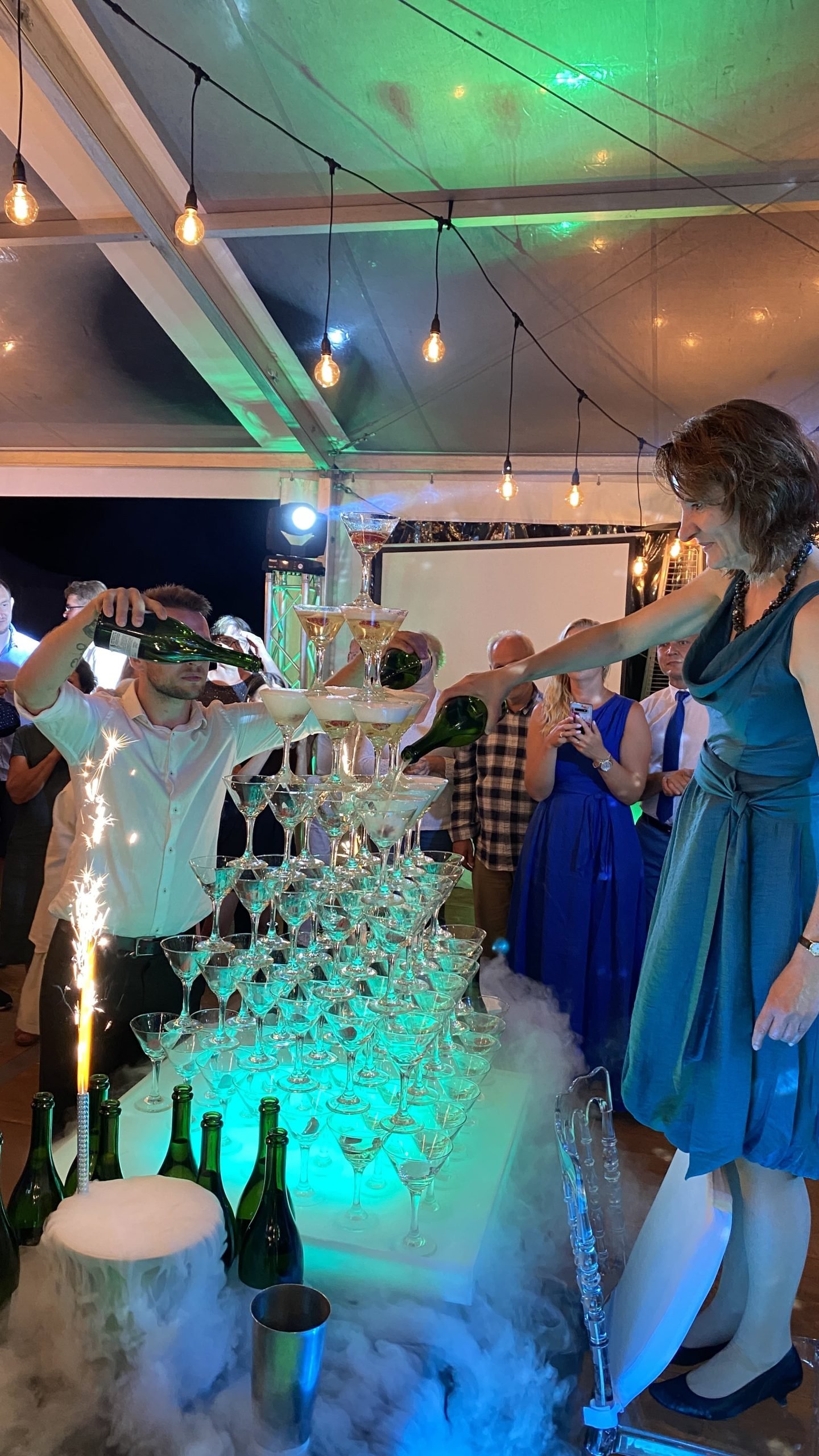 Šią pramogą ypač populiaru rinktis kaip vidurnakčio šou. Ir ne veltui! Profesionalūs barmenai šią akimirką padarys iškilmingą, o svečiai vaišinsis puikiu šampanu.