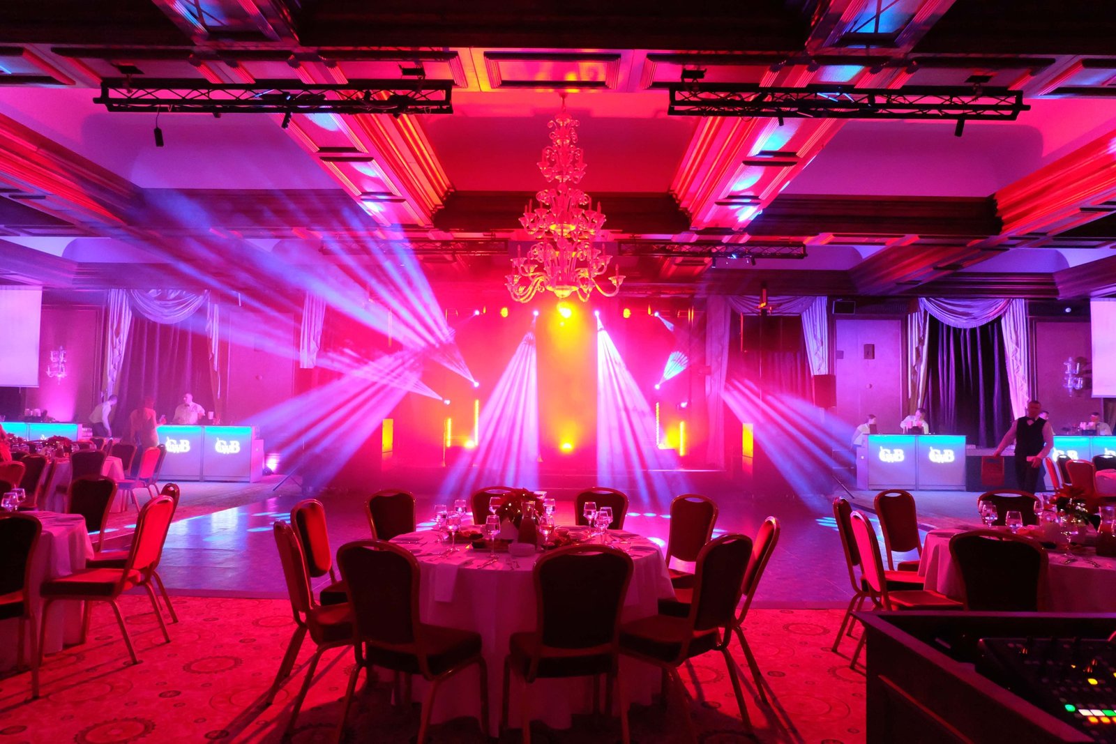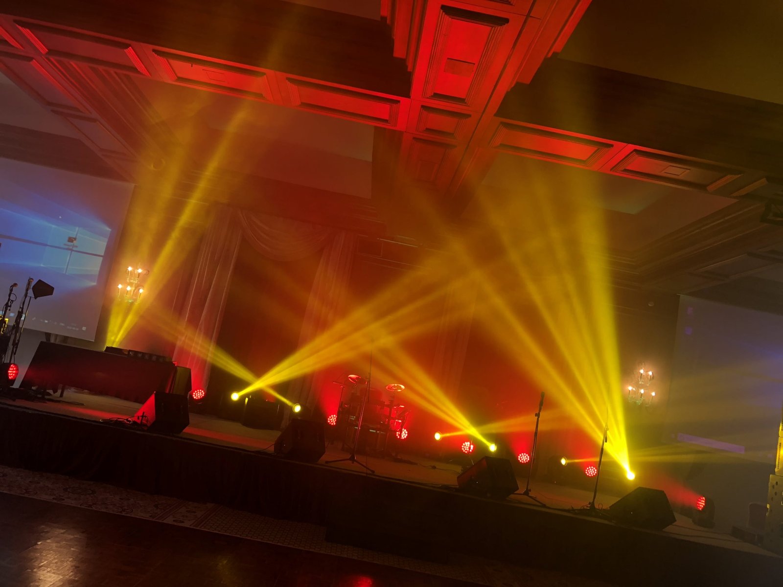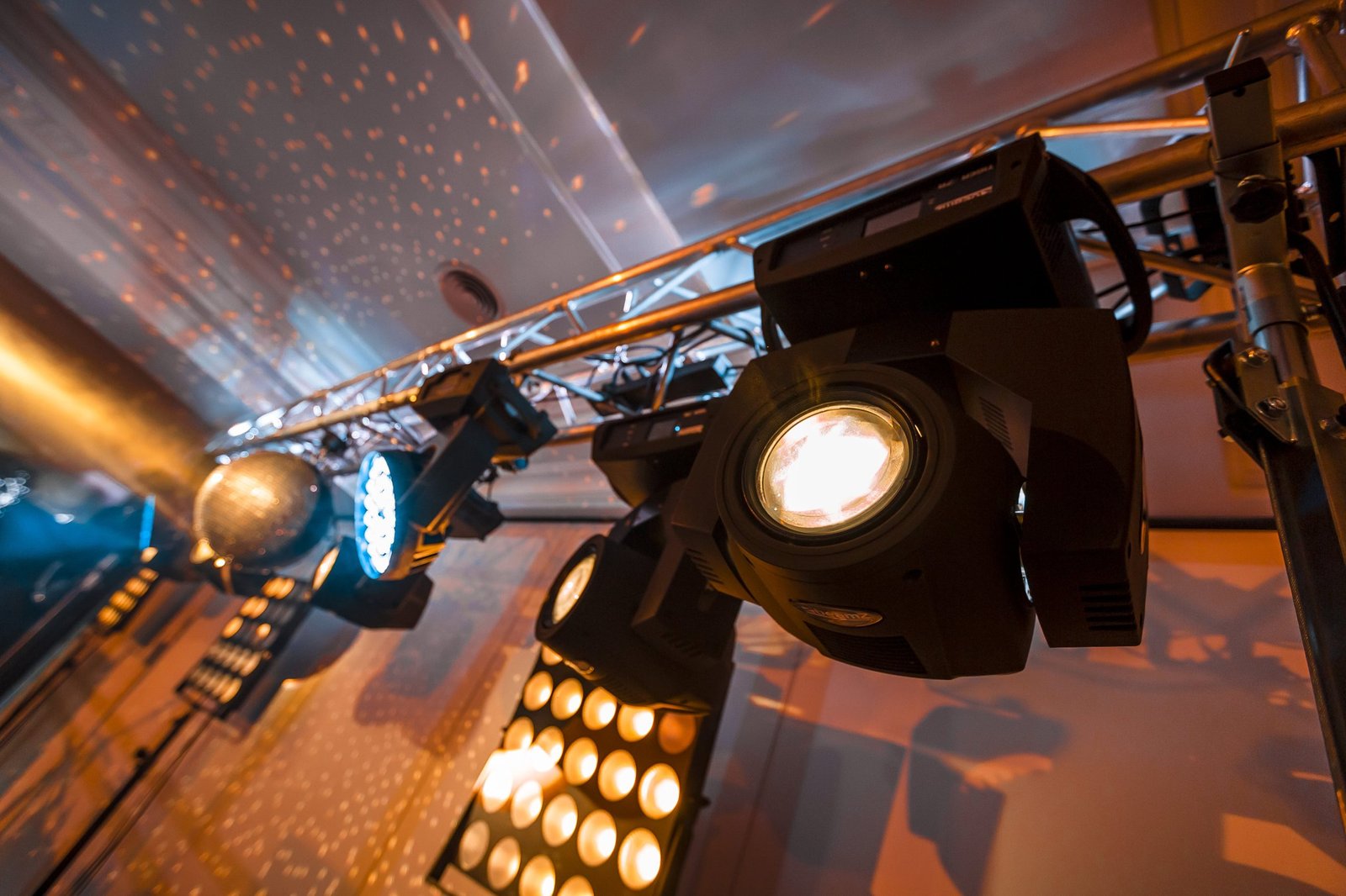 - Apšvietimo dizainas – scenos ir salės apšvietimas, dinamiški šviesų efektai, spalvų derinimas prie renginio stiliaus.