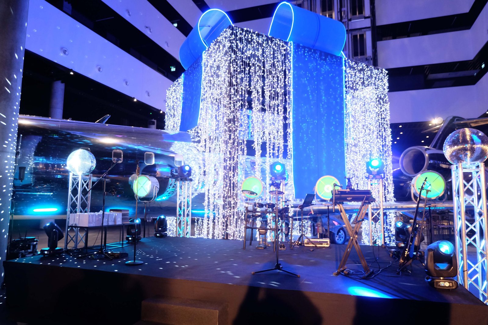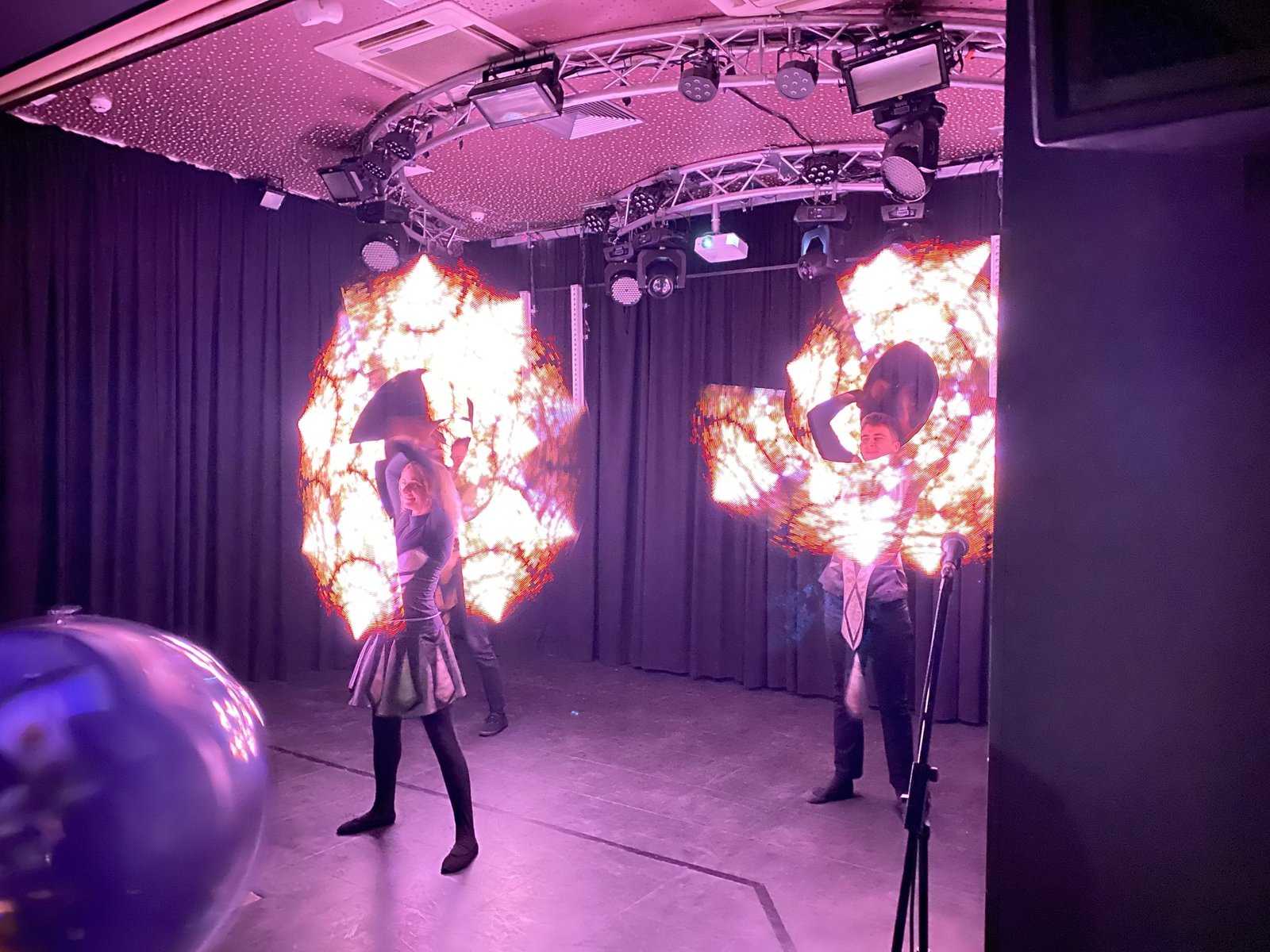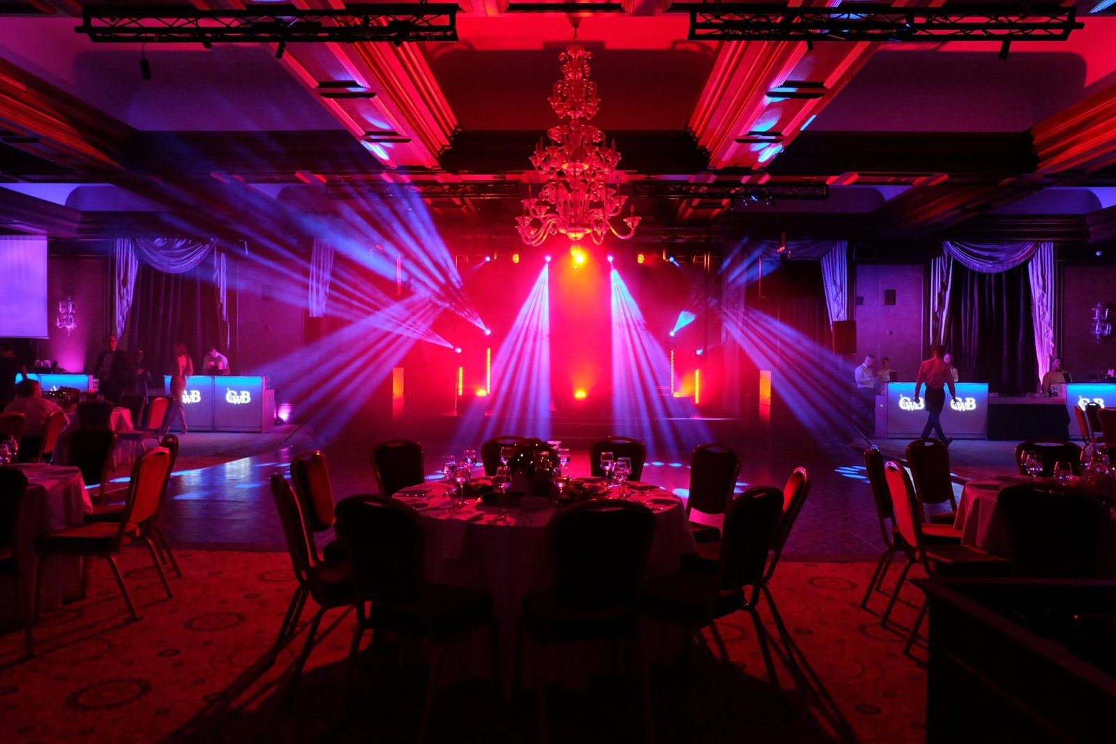 - Apšvietimo dizainas – scenos ir salės apšvietimas, dinamiški šviesų efektai, spalvų derinimas prie renginio stiliaus.