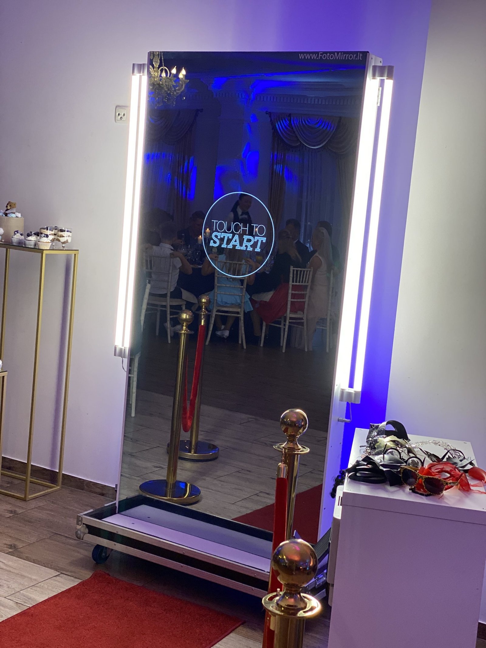 Galime pasiūlyti išsinuomoti Jūsų norus ir poreikius atitinkančią foto sienelę: su įmonės ar rėmėjų logotipais, nuotraukomis, piešiniais, gėlių ar balionų kompozicijomis, „gyvą“ foto sienelę, foto sienelę su bet kokiomis kitomis Jūsų turimomis idėjomis bei foto veidrodį.