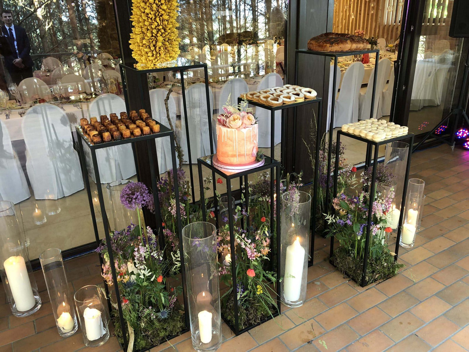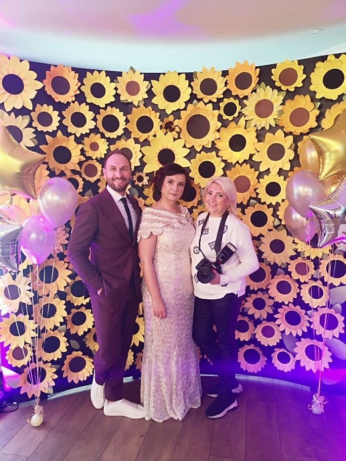 Salės, stalų dekoras, foto sienelė