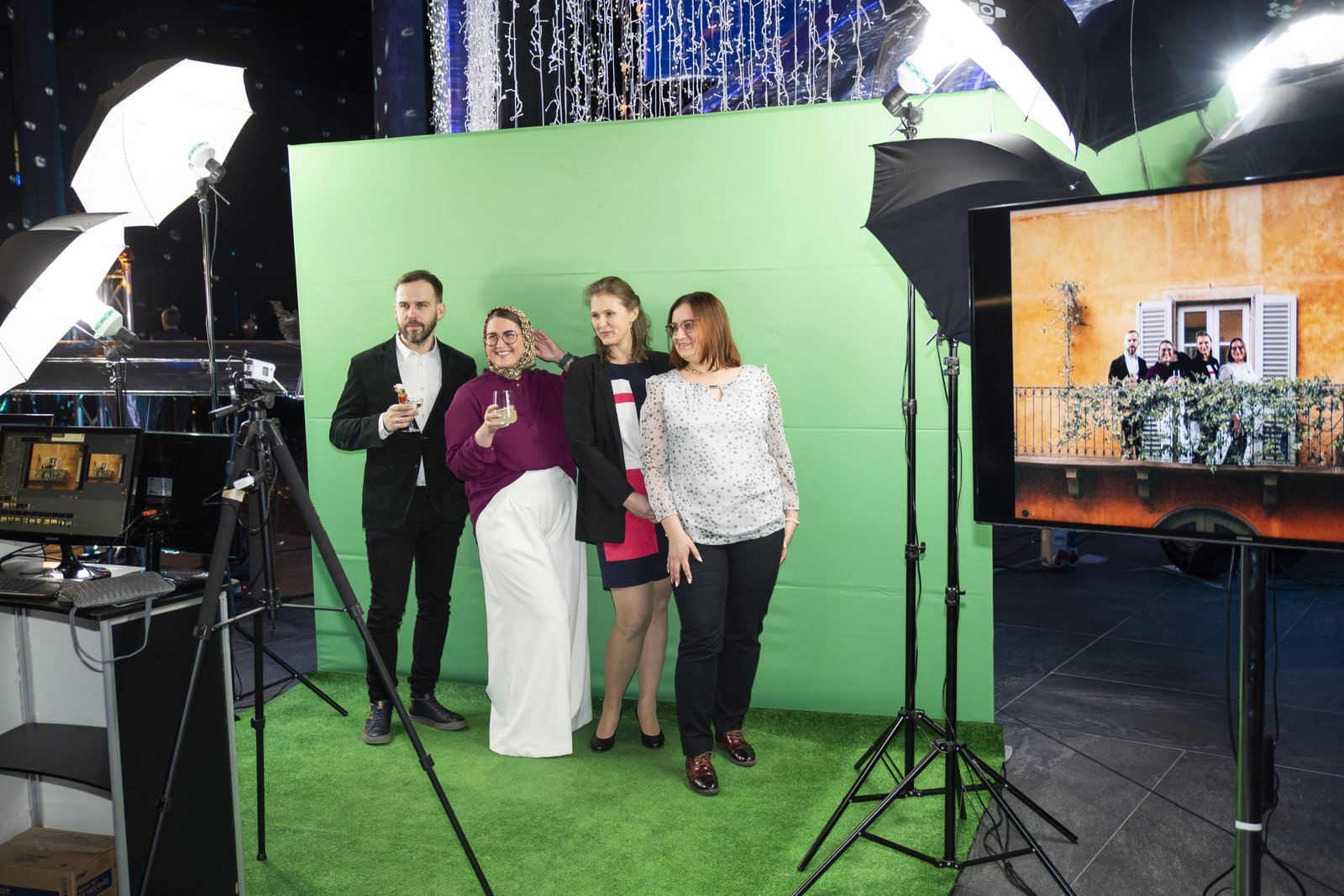 - Vizualiniai efektai ir multimedija – ekranai, projekcijos, LED sprendimai, vaizdo transliacijos.